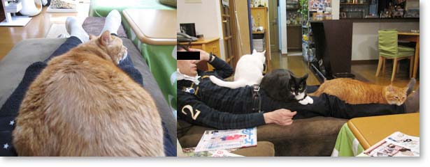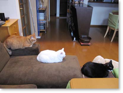 体表面積が広いので 3匹が乗ります。 これは先週の帰省の時ですが、 |